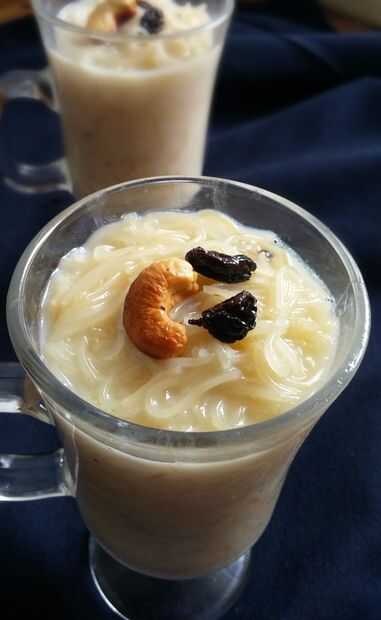 Kheer es un pudín de arroz de la cocina del subcontinente indio, hecho hirviendo el arroz, trigo quebrado, tapioca o fideos con leche y azúcar; está aromatizado con cardamomo, pasas, azafrán, anacardos, pistachos o almendras. Es un postre tradicional de la India, que generalmente lo hacemos para todas las fiestas. Es rico, cremoso y delicioso postre. He hecho esto con fideos de la semiya. También se puede hacer con crema de trigo/Sooji/Rava.