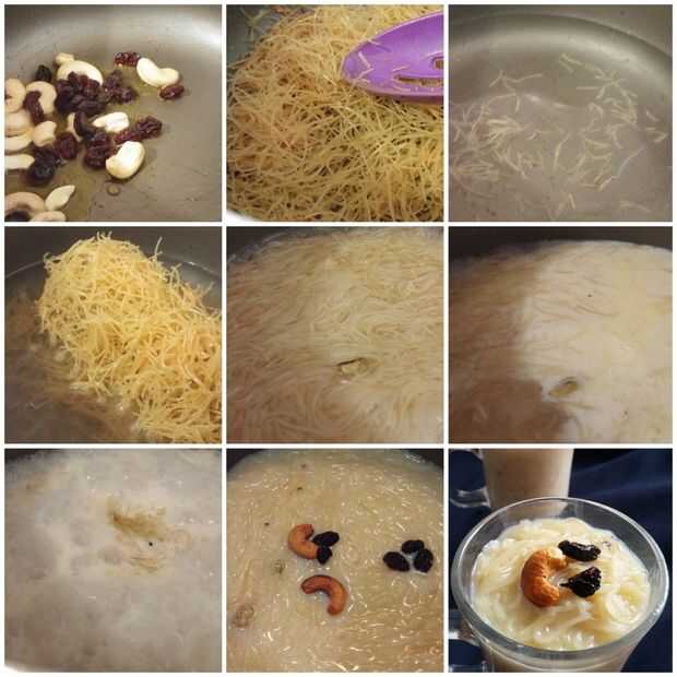 En la misma sartén, poner agua a hervir. Añadir fideos fritos, azúcar, elachi en ella y cocine hasta que se convierten en suave y transparente.