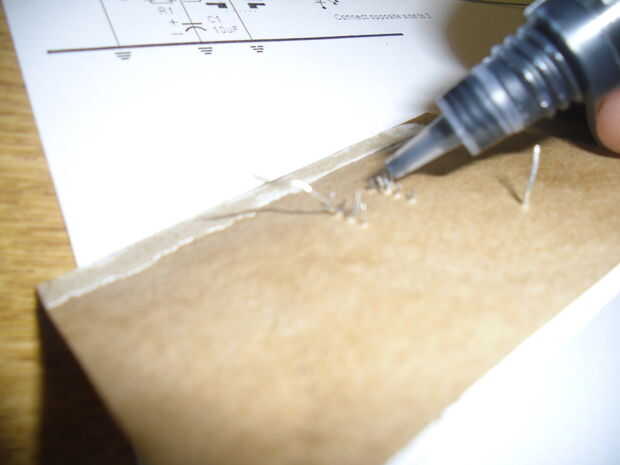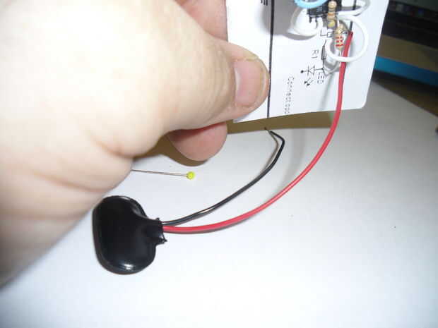 Ahora añadir barniz conductor desnudo para conectar los cables y circuitos.   Cortar cables restantes a Sobrehilar el circuito.  Agregar el adaptador de alimentación de 9 voltios, y termines con el circuito de etapa de construcción una vez que se agrega la batería.