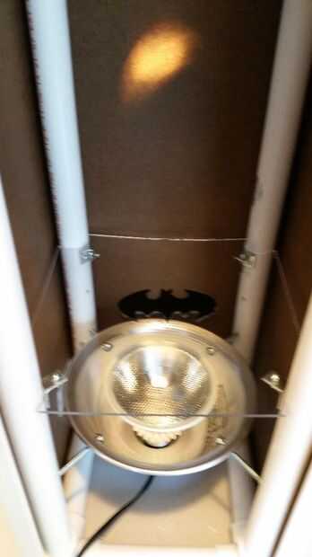 Te necesitamos para levantar el símbolo bat de la bombilla para mejorar la nitidez de la imagen, suavizar la luz y reducir la cantidad de calor en el acrílico. La bombilla LED no produce mucho calor, pero todavía se pone demasiado caliente para que me sienta cómodo dejarlo correr todo fin de semana cuando no estoy alrededor.