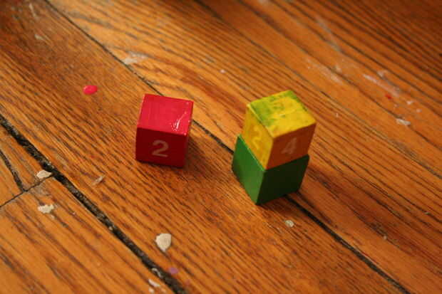 Para empezar, si ya tienes cubos pintados de rojo, amarillo y verde y con números en ellos, empezar a armarlos como un semáforo. Si no, recoger 3 cubos de madera de una tienda de artesanías, pintar cada uno rojo, amarillo y verde y deje secar. Usted debe comprar cubos que no son demasiado pequeñas y no demasiado grande; cubos de 1 x 1 pulgada deberían ser suficiente. Estaba realmente suerte de encontrar 3 cubos, de las cuales 2 tienen números en ellos. El cubo verde no tiene nada, pero verás lo que hice con ella en la imagen final. Quería que mis cubos para representar mi cumpleaños. Por lo tanto, pinté todos a excepción de los números que quiero con la misma pintura de color.