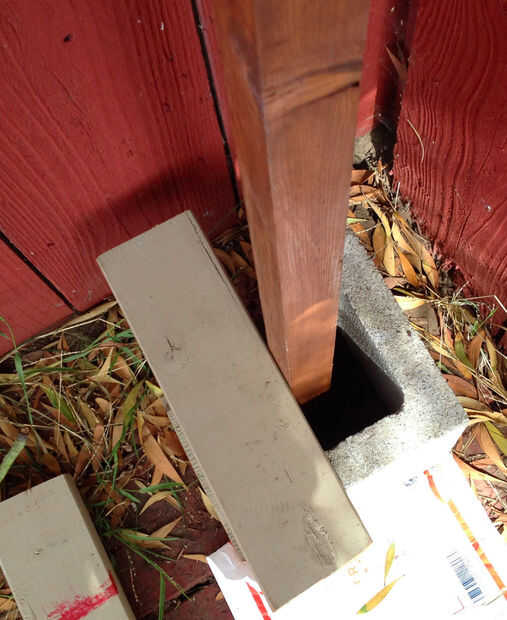 Coloque su base en una esquina por lo que el signo pueda apoyar recta. También utilicé unos trozos de 2 x 4 para asegurarse de que no lean. Asegúrese de que es nivel.