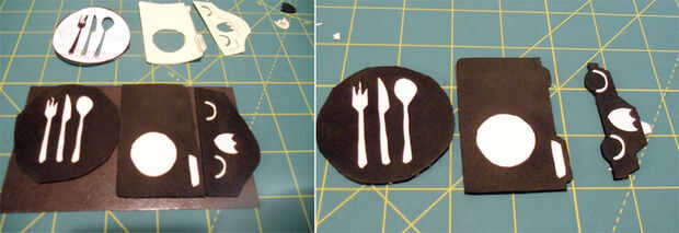 La espuma combinada recorte en el lado adhesivo del imán de la hoja de transferencia. Si su hoja magnética no tiene un forro adhesivo utilice cualquier tipo de adhesivo.