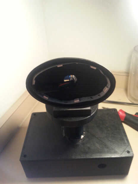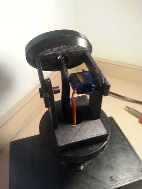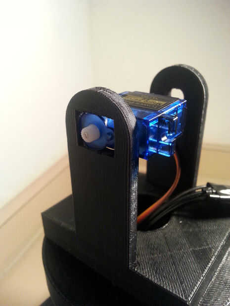 6. Conecte la lámpara a su base utilizando el tornillo y fijar el brazo del servo por lo que puede dar vuelta a la lámpara. (Asegúrese de que la han orientado el servo con su brazo de manera que cuando su encendido, y el brazo se establece en 0 grados, su en la posición correcta.)