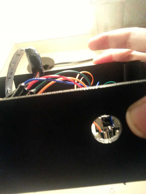 4. configurar la tira RGB en la lámpara y luego colocar el plexiglás en él (Nota: Si necesita retirar, utilizar un lápiz o un destornillador pequeño para empujarlo hacia fuera por pegarse a través del orificio en la parte posterior.)