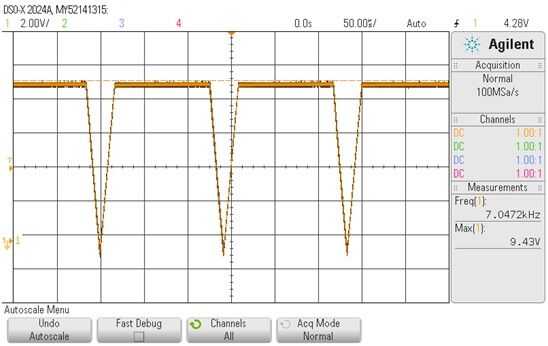 Los diagramas anteriores son de la señal AC es recibido por el fotodiodo para las frecuencias de 500Hz y 7kHz, respectivamente.