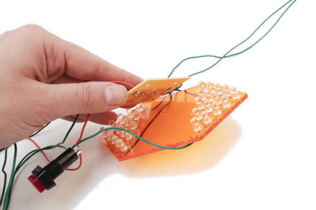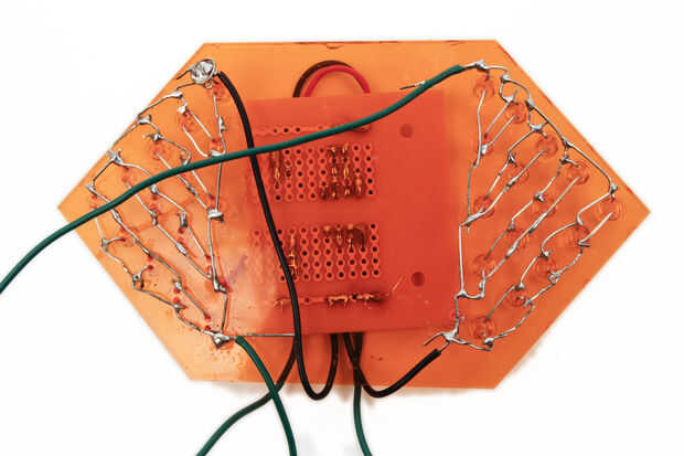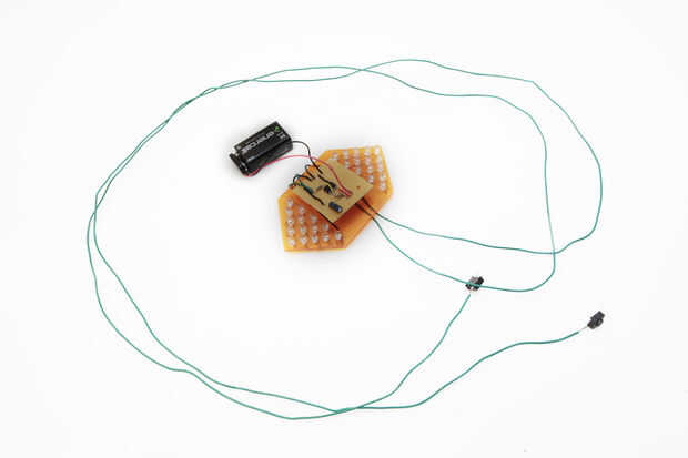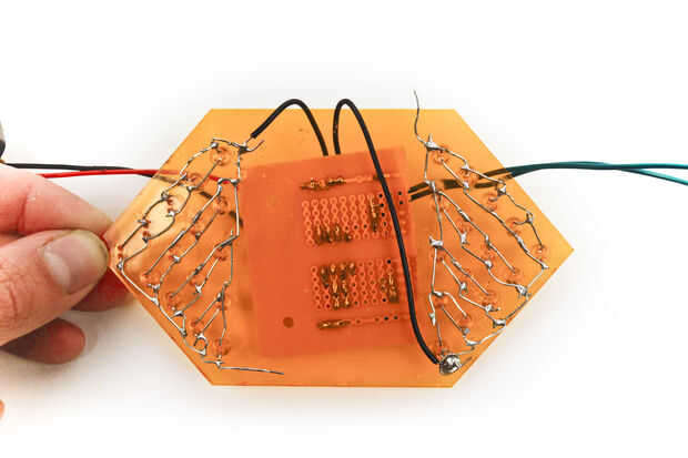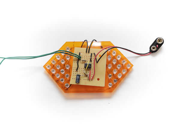 Conecte dos cables desde el carril de tierra en el circuito a sus negativo matrices de LED en el panel de acrílico.