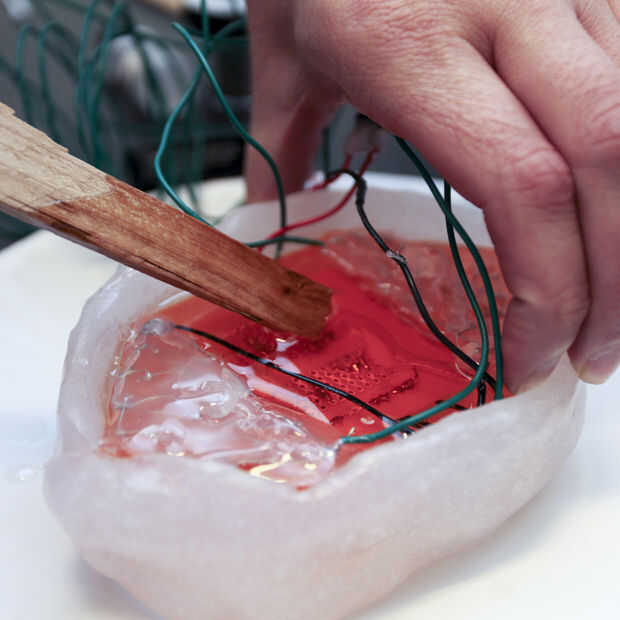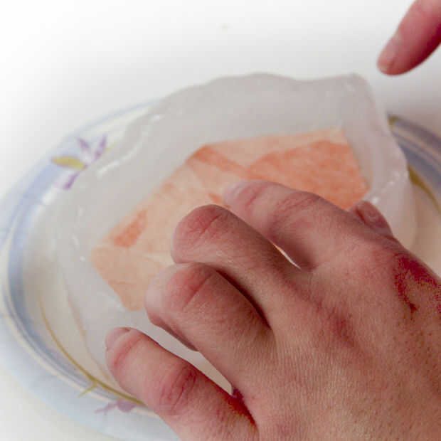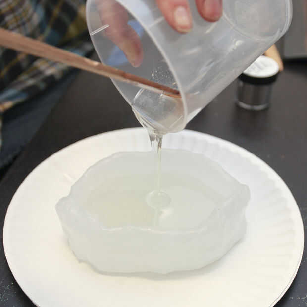 Después de que había curado el molde, vierte 4 onzas de resina catalizada en el molde y luego presiona mi proyecto en la resina. Apartar y dejar para curar por un día.
