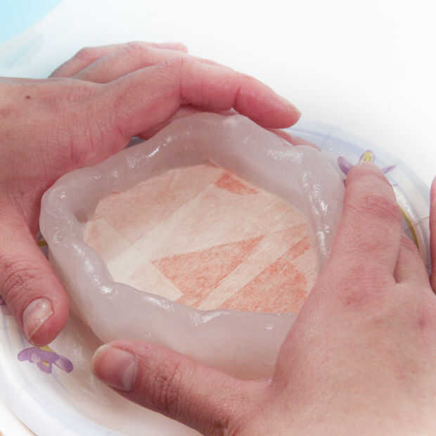 Utilizando la placa de acrílico extra laser corte del paso 6, utiliza cinta adhesiva para tapar todos los agujeros de la placa y aplastado en el molde, dejándolo reposar un día y curar adecuadamente.