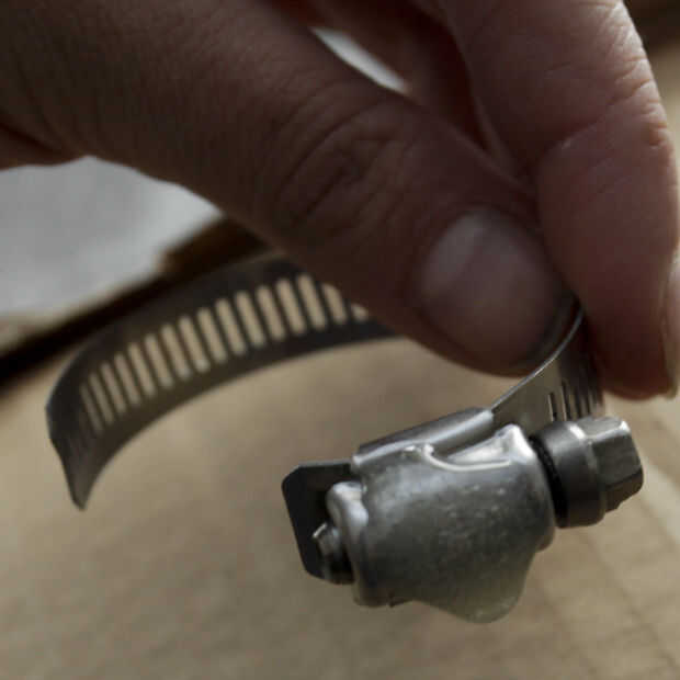 utilicé un lenguado de rápido dos parte epoxy adhesivo para adherir una abrazadera a la luz. Configurarlo, asegúrese de que no caiga y no tocarlo mientras el pegamento endurece.