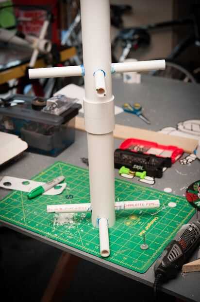 Medida y corte: utilizando la 1/2" PVC mida 3 segmentos de cada longitud y corte. Utilicé una sierra de ingletes para obtener un buen corte incluso liso. Marque las secciones con el color correcto.