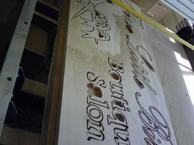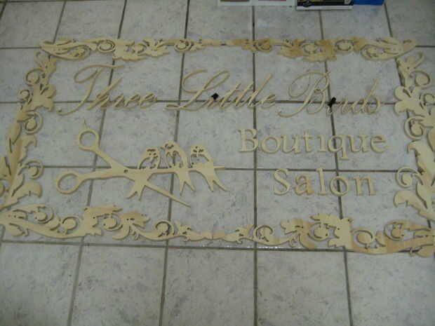 Los signos de edificación fueron significativamente más difíciles y hacen 2 que se indica para el frente o los laterales del edificio mide 4'x 6' y 3'x 6' respectivamente. Utilicé una madera contrachapada exterior de alto grado para ellos y si tuviera un presupuesto ilimitado habría mirado en hojas de acrílico o signo espuma pero los son significativamente más caros. Utilizando el mismo archivo de logotipo he añadido un diseño floral del arte del clip gratis para ir con el tema de salón boutique.