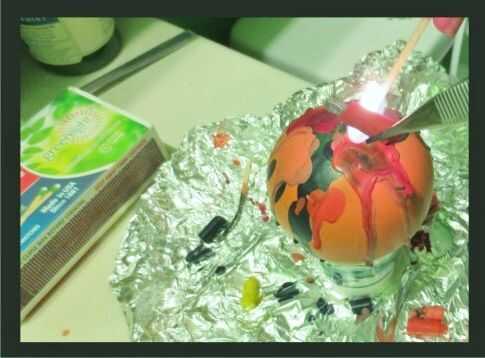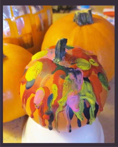 Probamos el derretimiento crayon uno. El secador mantiene haciendo las ceras caen de la parte superior de la calabaza! Así que recurrí a derretir la Crayola con un fósforo encendido. Resultó lindo!