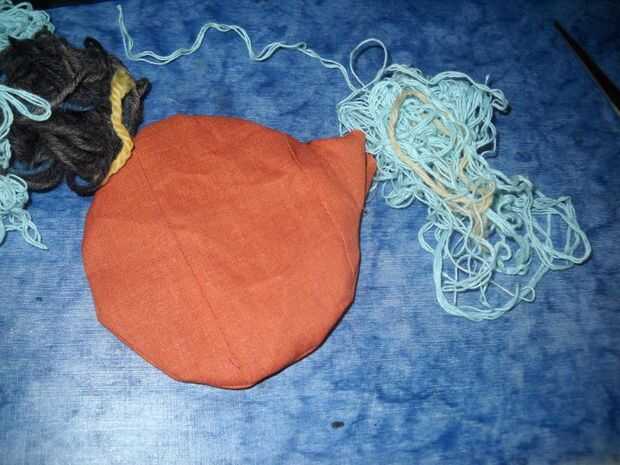 Rellene los círculos. He utilizado retazos de algodón y lana de tres jerseys que he hecho anteriormente.