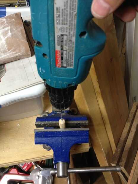 No tengo una prensa del taladro pero tengo un vicio. Todo lo que utilizas, que desea tener verdadero cuidado si no tienes un vicio o algo para sostenerla con. Si no tienes un tornillo de banco, utilizar un vice grip. No quiero la clavija y apuñalar a sí mismo con el cuarto de cinco sesenta!