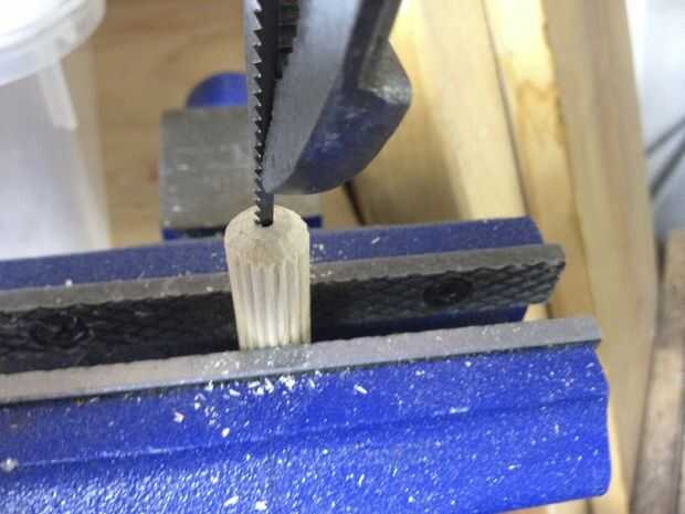 Con la espiga en el vicio tomar la hoja y agarre con unas pinzas y presionar en el mango. Realmente podría ensuciar la mano tratar de esto sin un alicate. Resulta que (y si mi matemática es correcta), que terminó presionando la lámina unos 7/8 de pulgada en el mango y es realmente apretada.