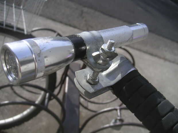 modificar un mini-maglite AA para una luz de bicicleta barato duradero, de bajo perfil. Cuenta con LEDs para batería de larga duración y controles remoto montados en el manillar. Incluso puede seguir usando la linterna de la bicicleta. Ideal para pas