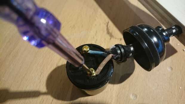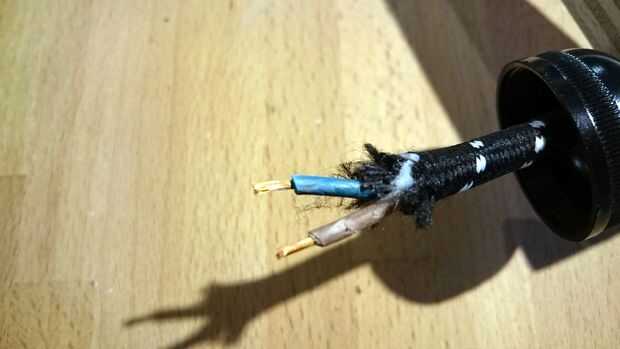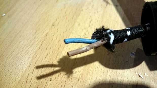 2) Similar a la del enchufe, tira de los cables en consecuencia, pero quite el cable de tierra por recortes con una pinza.