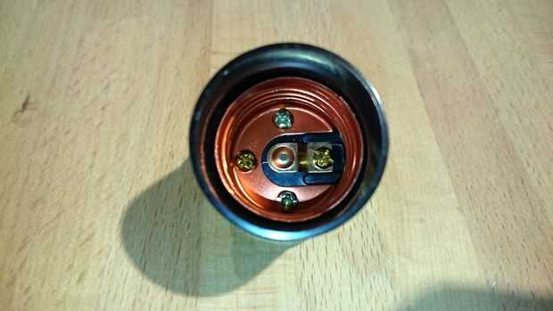 3) encontrar la pieza central conectada con el reverso del titular de la bombilla punto de conexión. Se trata de la a la conexión en vivo por razones de seguridad.
