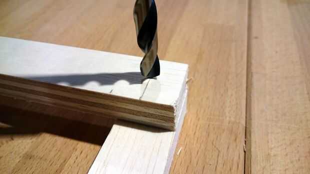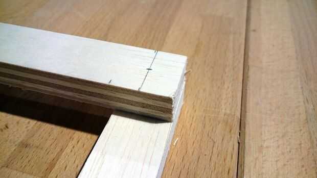 1) Alinee dos tiras de madera perpendicular entre sí en las esquinas como se muestra y marque el centro de la intersección de las dos piezas.