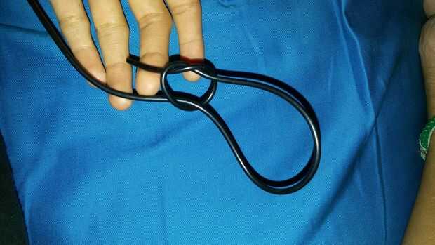 Que exista un lazo de diámetro lo suficientemente grande para lazo alrededor de su peldaño, como se ve en la foto 5.