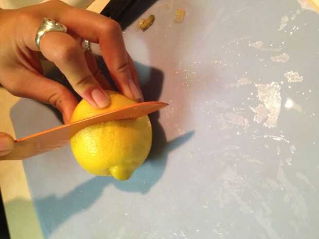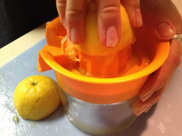 • Una vez en la mitad, cada mitad y jugo en el exprimidor (Presione firmemente y gire)