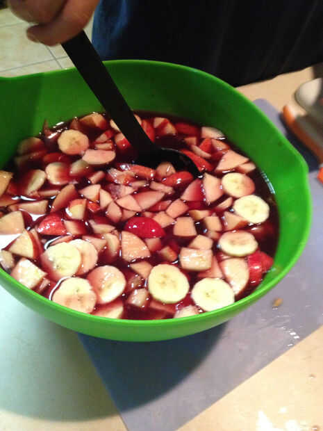 es alto verano en Melbourne y (algunas de) las noches son cálidas. Quería un refresco en el clima caliente, tenía una media botella de vino tinto.Busqué recetas de sangría y no había nada que era lo suficientemente simple como para mí. No thinki esto