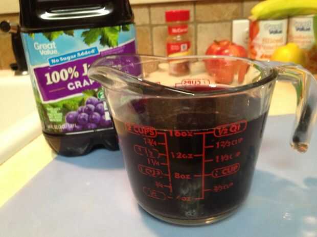 • Tome el jugo de uva y verter en una taza de 16 onzas. Hacer esto dos veces así que no hay un total de 32oz