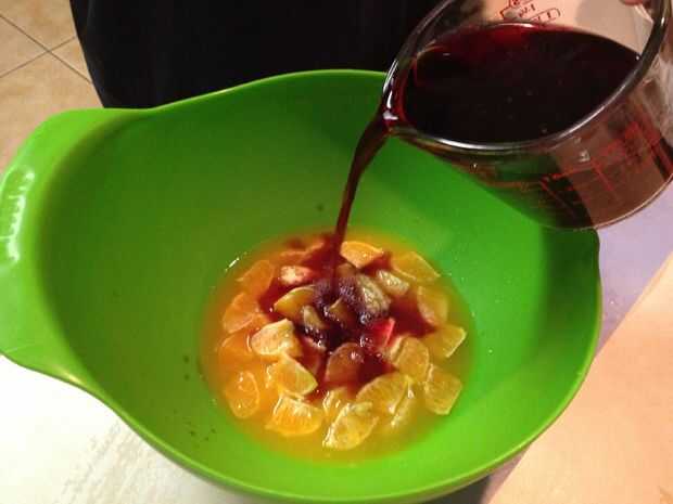 es alto verano en Melbourne y (algunas de) las noches son cálidas. Quería un refresco en el clima caliente, tenía una media botella de vino tinto.Busqué recetas de sangría y no había nada que era lo suficientemente simple como para mí. No thinki esto