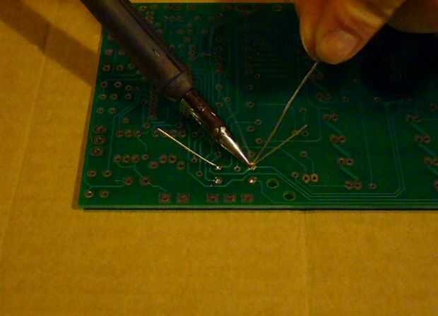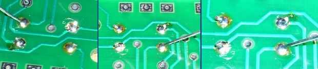 Una superficie limpia es muy importante si quieres un fuerte, baja resistencia soldadura de empalme. Todas las superficies a soldar deben limpiarse bien. 3 M Scotch Brite comprada mejoras para el hogar, tienda de suministros industriales o taller de carrocería automotriz son una buena opción ya que rápidamente quitará deslustre superficial sino que desgastan el material del PWB. Tenga en cuenta que quieres pastillas industriales y no la cocina almohadillas impregnadas con limpiador o jabón de limpieza. Si usted tiene depósitos particularmente duros en su tabla, entonces un grado fino de lana de acero es aceptable pero ser muy cautos en tableros con tolerancias estrechas como las virutas de acero finas pueden presentar entre los cojines y en los agujeros. Una vez que han limpiado el tablero hasta cobre brillante puede utilizar un disolvente como la acetona para limpiar cualquier bit de la almohadilla de limpieza que puede permanecer y para eliminar la contaminación química de la superficie de la Junta. Hidrato de metilo es otra buena acetona solvente y luego un poco menos apestoso. Tenga en cuenta que tanto estos solventes puede eliminar la tinta, así que si tu tablero es seda defendido, probar los químicos primero antes de regar por todo el tablero.