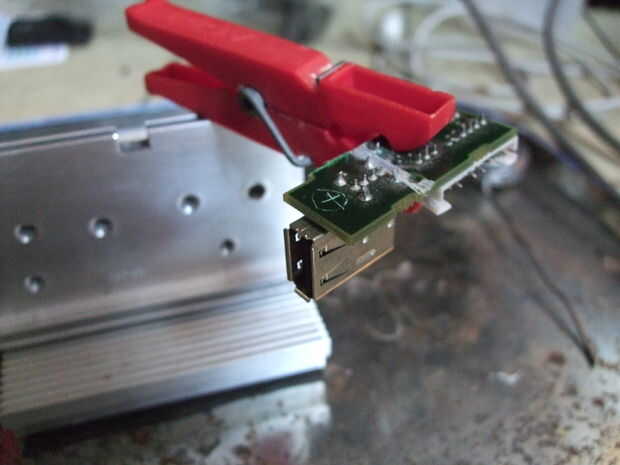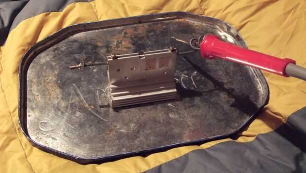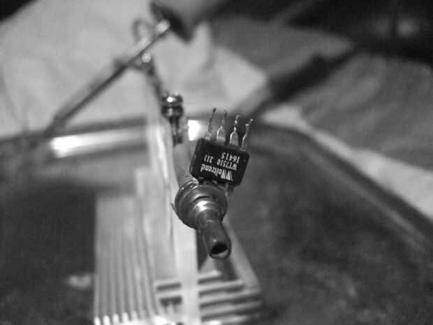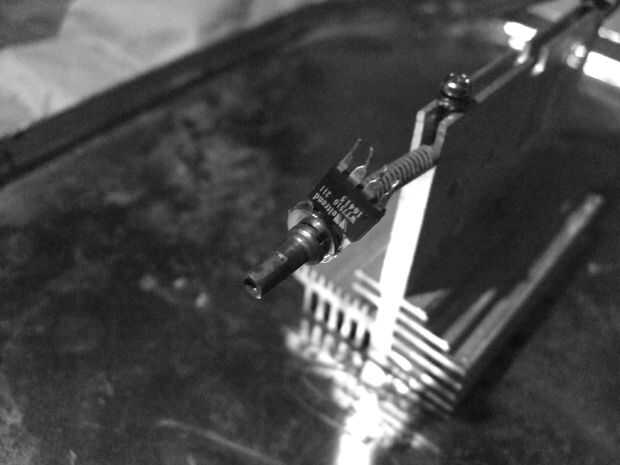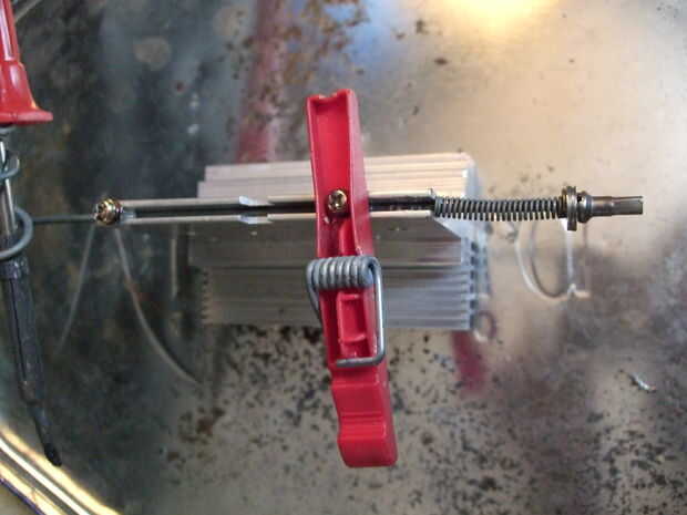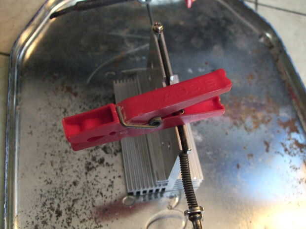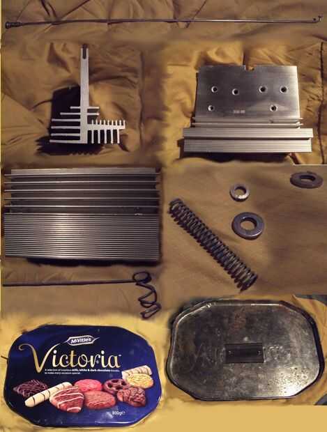 disipadores de calor son una basura abundante y poseen ranuras semi roscas para recibir tornillos. así solía estas arboledas en la parte superior un rayo de bicicleta en el lugar y en la parte inferior para fijarlo a la tapa de lata galleta de la abrazadera. el extremo roscado del rayo de bicicleta se alimentan de un resorte, entonces una Arandela partida y las otras arandelas y el atornillado el pezón, para que el resorte es comprimidos y pequeños componentes a soldar puede fijarse entre las arandelas. Yo también he atornillado en una clavija de ropa para la celebración de algo más grande, como un tablero de circuito, por ejemplo.