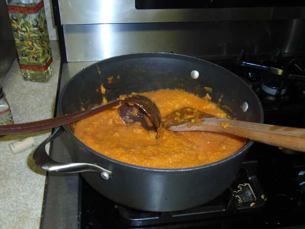 tomé clase de cocina primer trimestre en la escuela. Que estábamos tratando de centrarse en los alimentos de temporada y como resultado muchos de nuestros platos fueron basados alrededor de calabaza. El original tenía demasiado curry para mí así que