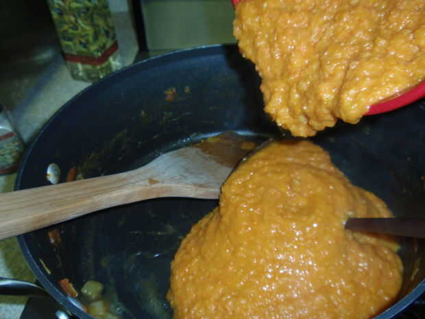 tomé clase de cocina primer trimestre en la escuela. Que estábamos tratando de centrarse en los alimentos de temporada y como resultado muchos de nuestros platos fueron basados alrededor de calabaza. El original tenía demasiado curry para mí así que