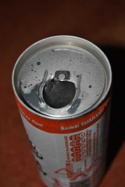 a continuación, puede se llenan de agua, mitad de una pulgada de la parte superior (o como 2cm) y ponerlo en el congelador para congelar. Este paso es crucial, ya que agua congelada será proveen sólida base sobre la que puede cortar la lata.