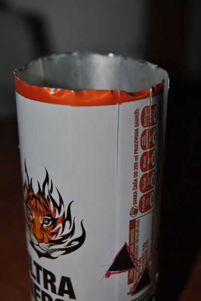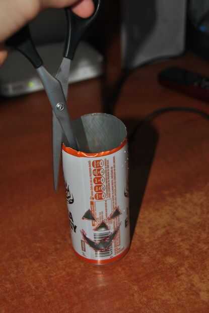 Ahora, usar las tijeras para cortar la lata, desde el abierto arriba hacia abajo, aproximadamente una pulgada (2, 5cm), media una apart(1,5cm) pulgadas...