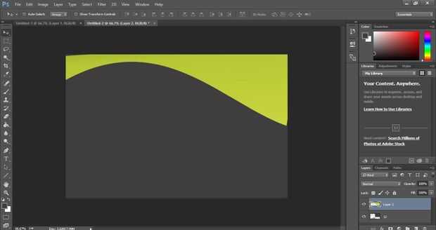 Ahora queremos añadir una forma que fluye para dar nuestra tarjeta de una mirada única, esta forma es ideal como encaja bien con un aspecto más adelante en el diseño por lo que recomiendo usarlo.