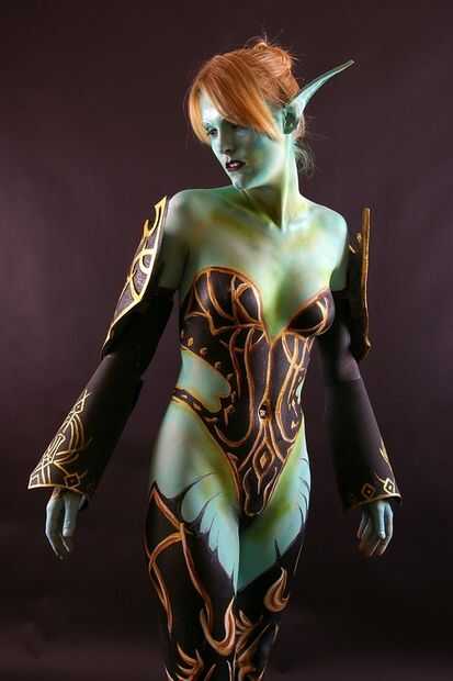 Aquí las dos imágenes muestran las orejas pequeñas equipadas pero sin hacen mayor, y un par de la costumbre larga orejas como parte de un cuerpo del elfo oscuro de pintura.