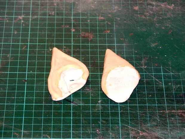 Se tarda aproximadamente una hora para cada capa curar antes de añadir otro. Este proceso se acelera en clima cálido o en un calentador pequeño si estás en un apuro grande. Voy normalmente hacer una capa y hacer algo más de una hora, volver y hacer otra capa y así sucesivamente. Necesita cubrir hacia abajo hasta la hélice y del lóbulo en la parte delantera, pero sólo una mucho más pequeña sección en la parte trasera. Hacia abajo para traslapar la parte básica de la armadura en aproximadamente 1/8"(3mm). La principal área para pegar en el oído real es en la parte delantera.
