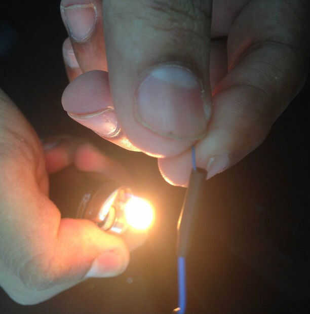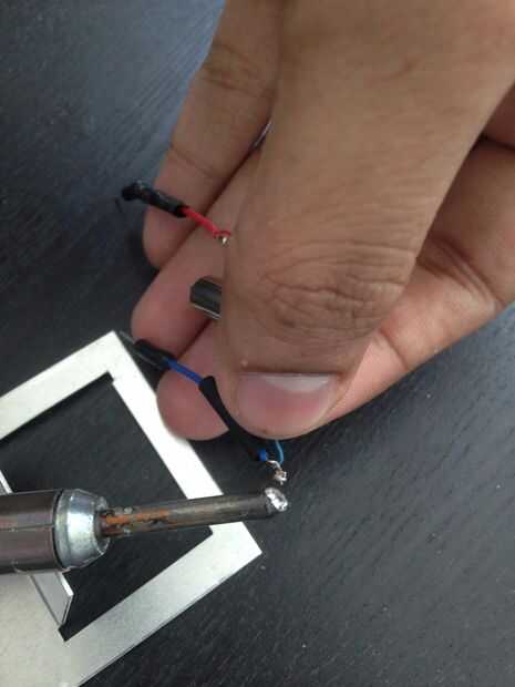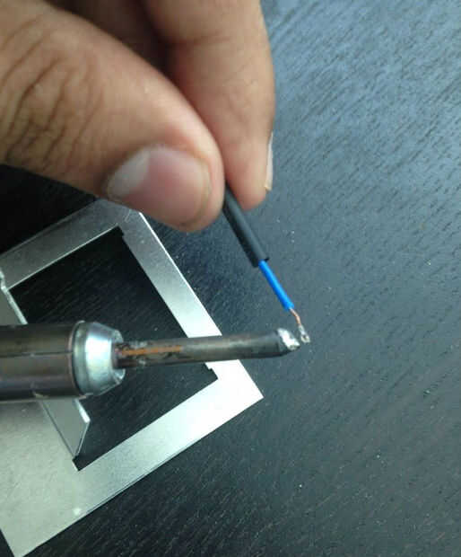 Corte el alambre de diseño por la mitad. Y añadir una pequeña soldadura para los cables de les lata