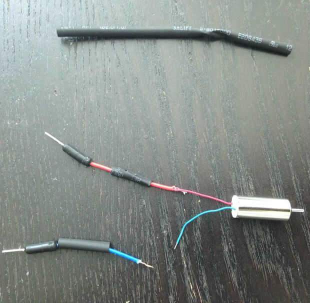 Ahora agregue el encogimiento del calor y la soldadura de los cables al motor