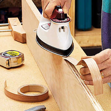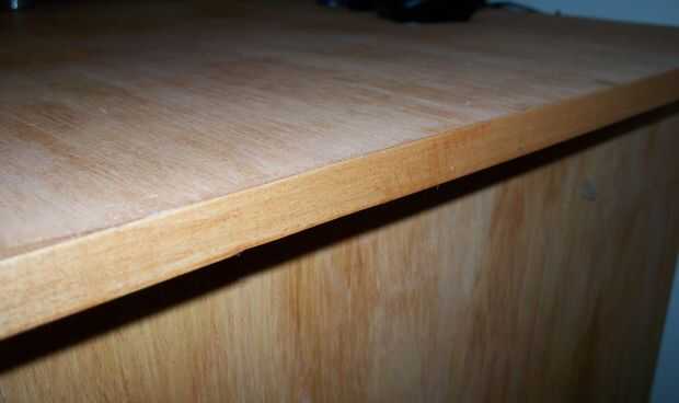 El siguiente paso es borde anillado. Esto cubre el borde de la madera contrachapada con la chapa de madera y lo hace parece ser una losa sólida de madera. Lugares de madera más grandes de la caja tendrá este anillamiento cerca de la madera contrachapada (Asegúrese de que es el mismo tipo de madera, o se parece a la madera contrachapada).