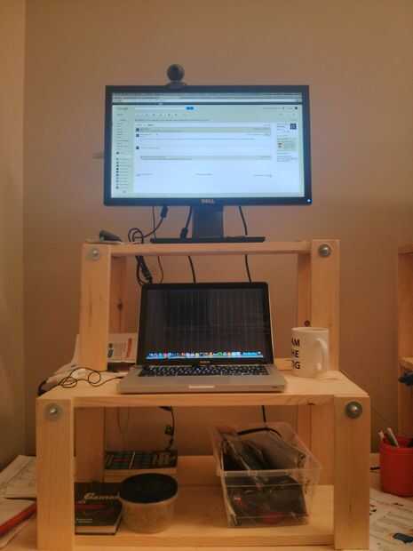 Prefiero a pie durante el trabajo y han construido varios escritorios de pie y cinta de correr. Mientras que eran funcionales, mi escritorio de pie anterior ha sido realmente hacks, utilizando cualquier desecho y hardware al azar que tenía a mano. Un