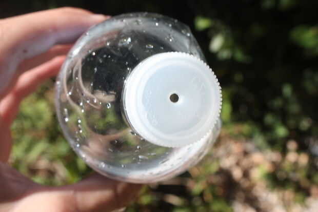 2) usando su cuchillo, tijeras o instrumentos afilados, hacer un pequeño agujero en el centro de la tapa. Asegúrese de que la tapa está en apretado!