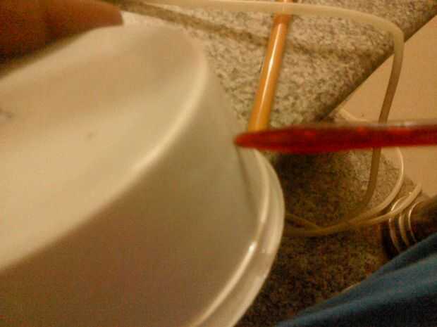 Ahora tenemos que hacer agujeros en la parte superior e inferior del envase utiliza una aguja de disección para esto pero puedes utilizar cualquier cosa
