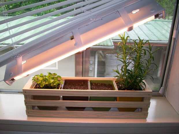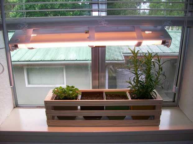 Necesitamos complementar la cantidad de luz natural proporcionada por nuestra ventana de cocina orientada al norte. Para ello hemos comprado un barato 18" fluorescente lámpara (cabido con una 18" crece la luz) y conectado a la parte inferior de las persianas de la ventana. Conectando la luz de las persianas nos podríamos fácilmente subir y bajar la luz, así como programar la luz en un ángulo, si es necesario para maximizar la cantidad de luz alcanzando las hierbas.
