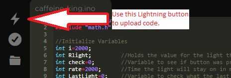 Una vez que estés en la pantalla de programación, copiar el contenido del archivo "caffking.txt" a este paso y pegar el contenido en la pantalla de programación. A continuación, seleccione el botón en forma de rayo para cargar el código.