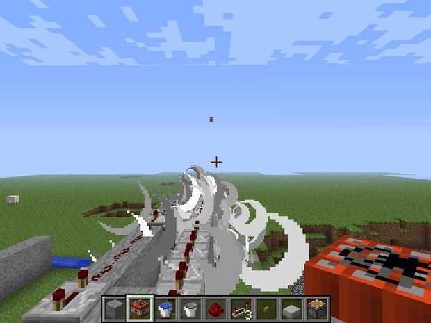 esto es un cañón que diseñé en Minecraft que dispara bastante lejos. I tiene una carga de condensación. Para aquellos que no saben lo que eso significa, una carga de condensación es una carga que se activa antes de la carga de leña y quita los espacios entre los bloques (como se ve en la foto 2) de tnt aumentando la gama de la leña. Espero que no era confusa.