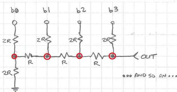 R2R escalera es un tipo de DAC (convertidor Digital-analógico)