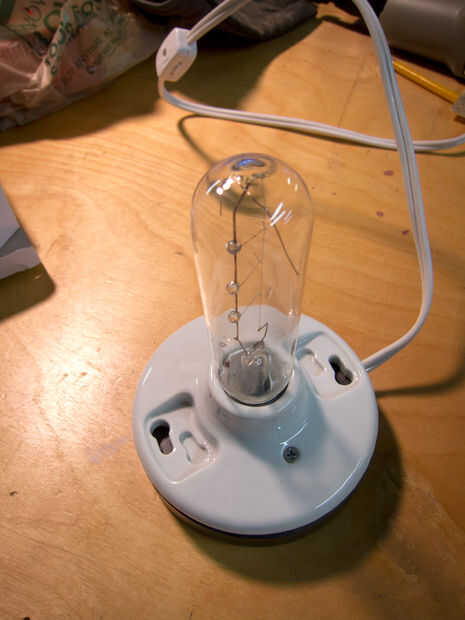 Es brillante (bombilla de 40W claro) y no quiere mirarlo directamente, pero me gusta el look retro a él. Por supuesto, puede utilizar cualquier bombilla en él y ser más verdes con un CFL.