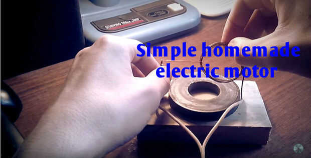 cómo construir un sencillo motor eléctrico:-Un motor eléctrico funciona pasando una corriente por una bobina de alambre. Cuando la corriente atraviesa la bobina crea un dipolo electromagnético. Campo de magnético de un imán permanente interactúa con